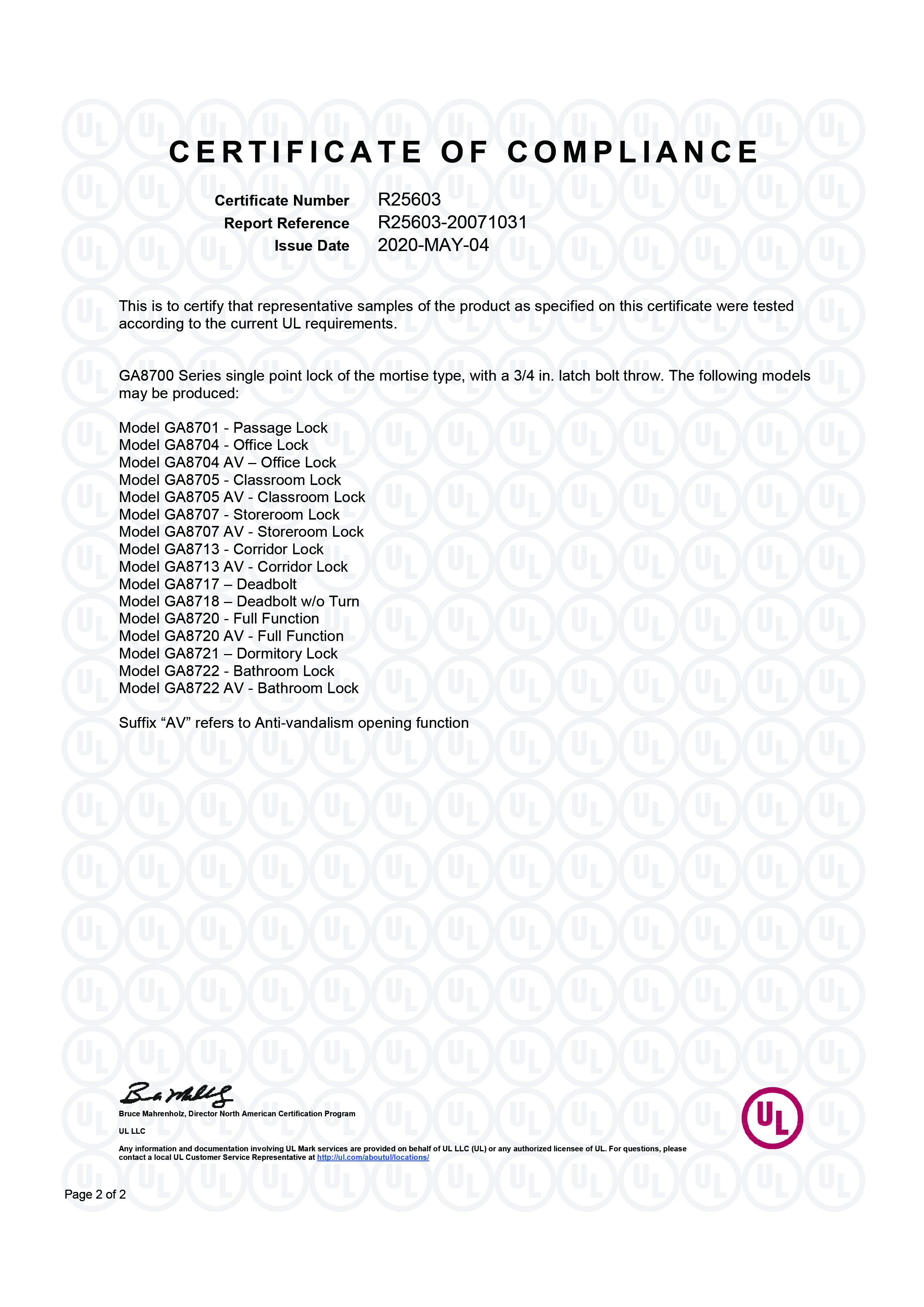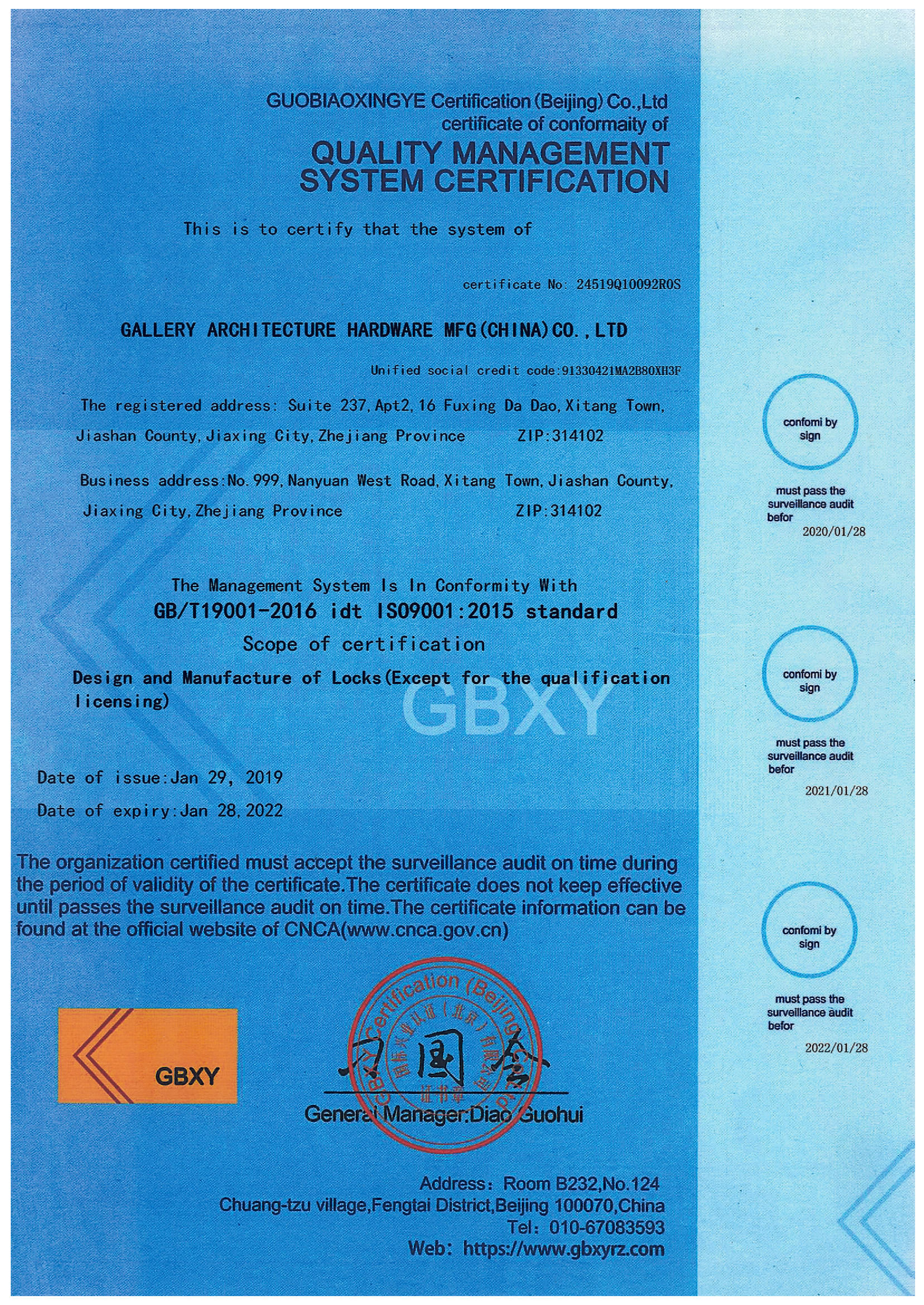 浙江堅迪五金制造有限公司始建于 1995 年。自 2003 開始,公司致力于高標準商業鎖的研發(fā)工作,并于 2006 及 2007 年,8700 插芯鎖系列獲得美國國家標準 ANSI A 156.13-2005 一級、ANSI A 156.2-2003 二級和美國 UL 10C3 小時防火測試認證。自 1998 年以來,公司不斷提升產品和客戶服務品質,并獲得了 ISO 9001 的認證。